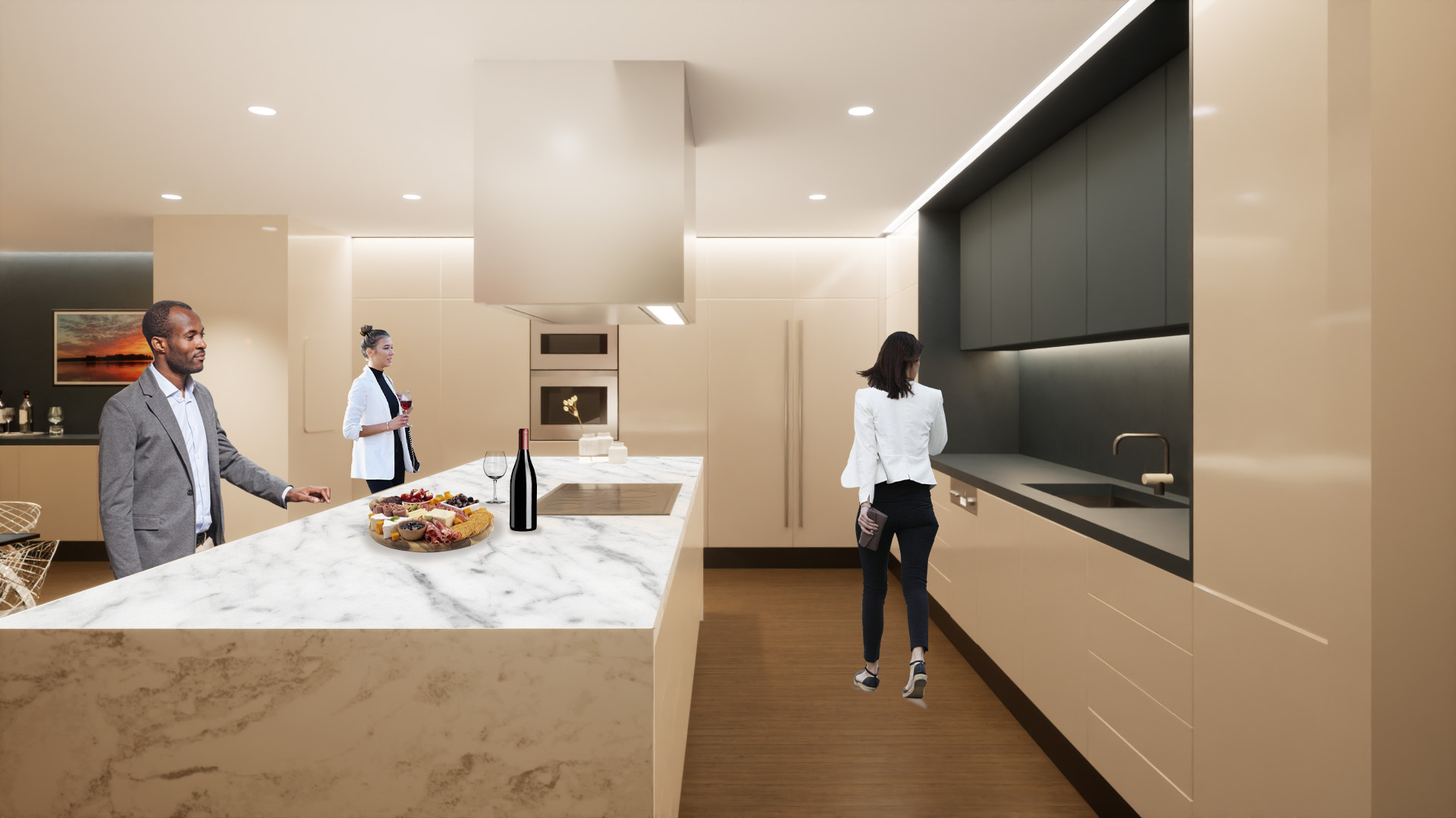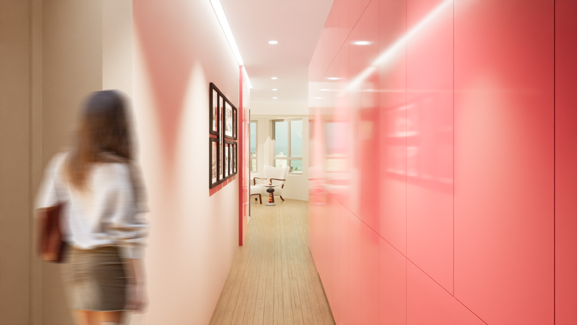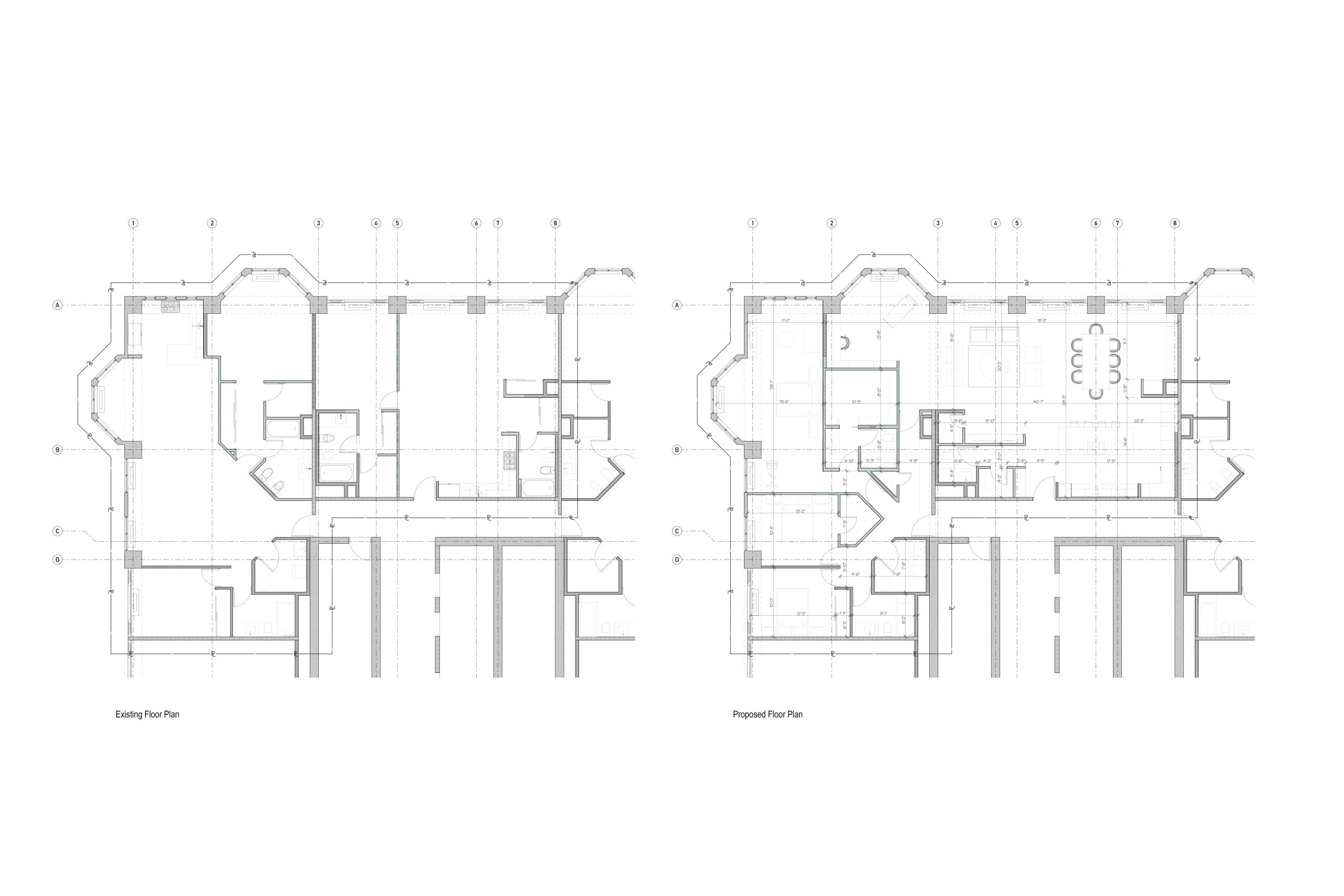 The existing units were in good condition but retained their original finishes and cabinetry from the building’s construction circa 2004. The design introduces a new spatial configuration that resolves the disjointed layout of the combined units, establishing a clear and intentional relationship between the living areas and sleeping quarters. This reorganization was carefully executed within the constraints of the existing infrastructure, resulting in a seamless integration of the two spaces into a single, functional home.