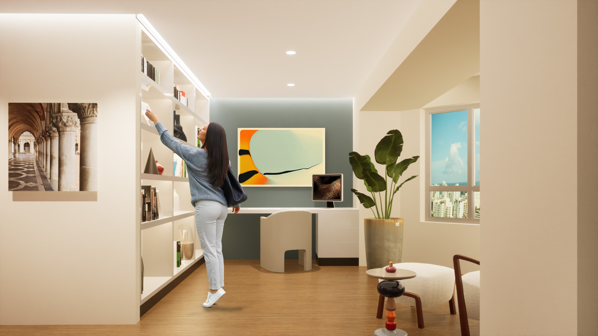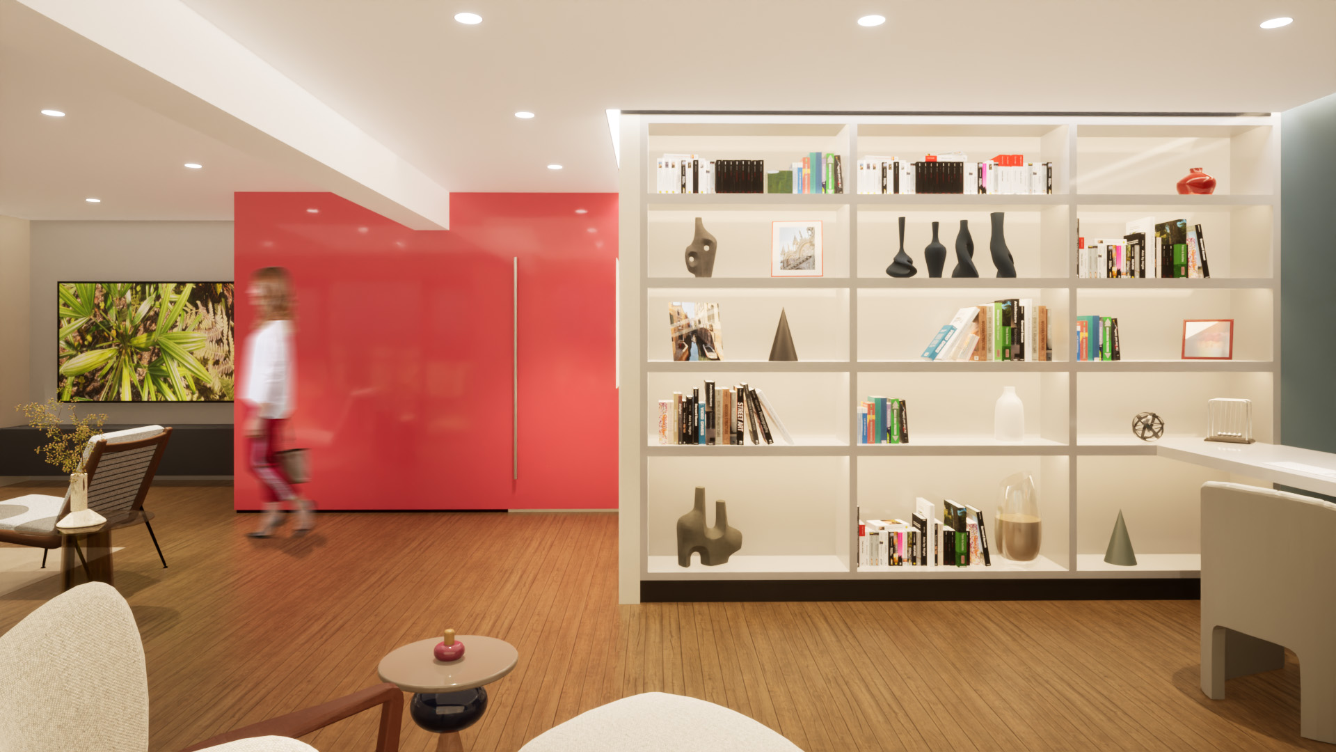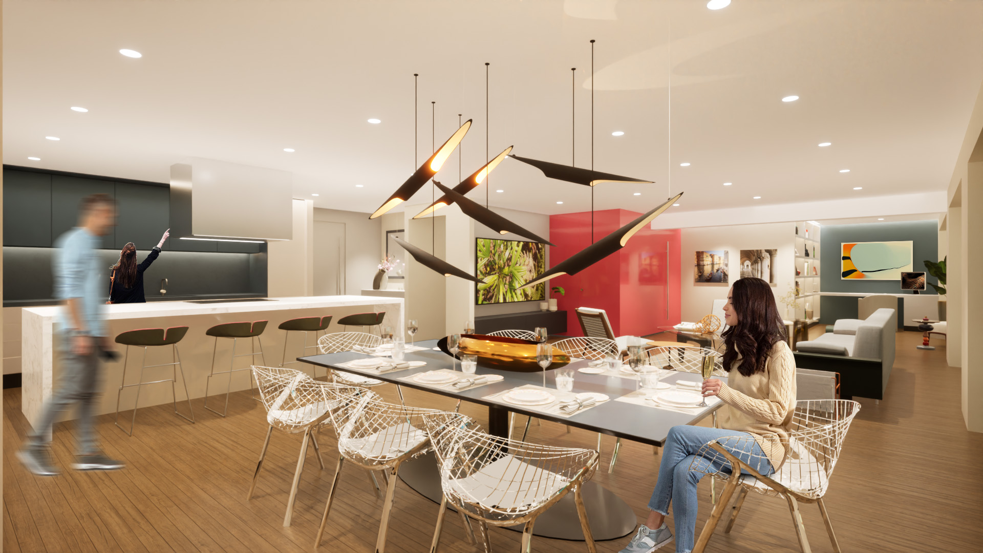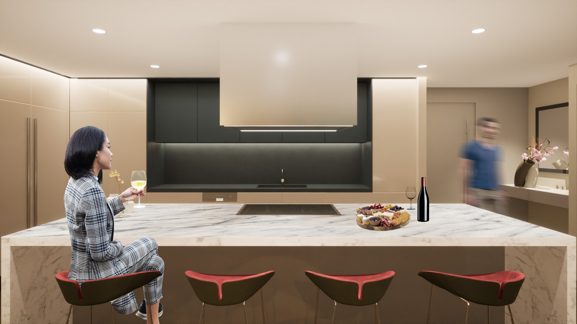 The existing units were in good condition but retained their original finishes and cabinetry from the building’s construction circa 2004. The design introduces a new spatial configuration that resolves the disjointed layout of the combined units, establishing a clear and intentional relationship between the living areas and sleeping quarters. This reorganization was carefully executed within the constraints of the existing infrastructure, resulting in a seamless integration of the two spaces into a single, functional home.
